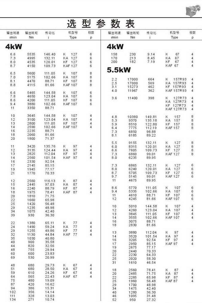 选型参数表4kW(续)和5.5kW