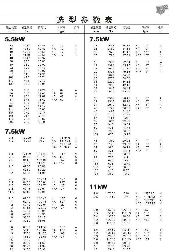 选型参数表5.5kW(续)和7.5kW,11kW