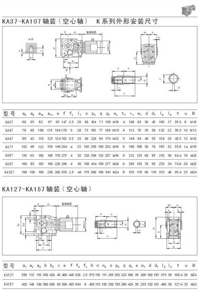 KA37-KA107轴装(空心轴) K系列外型安装尺寸?KA127-KA157轴装(空心轴)