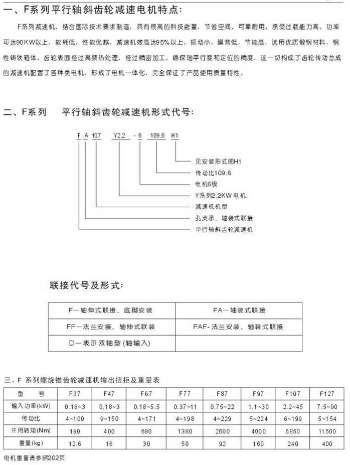 概述特点型号表示法联结代号及形式输出扭矩及重量表