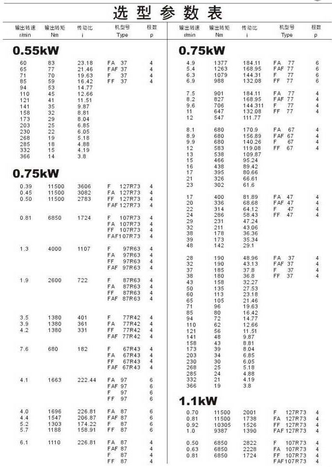 选型参数表0.55kW(续),0.75kW,1.1kW
