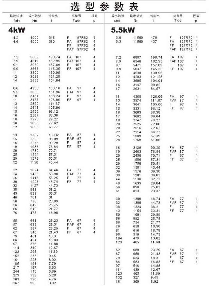 选型参数表4kW(续),5.5kW