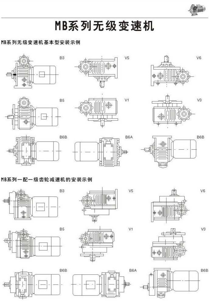 基本安装示例MB系列一配一级齿轮减速机的安装示例