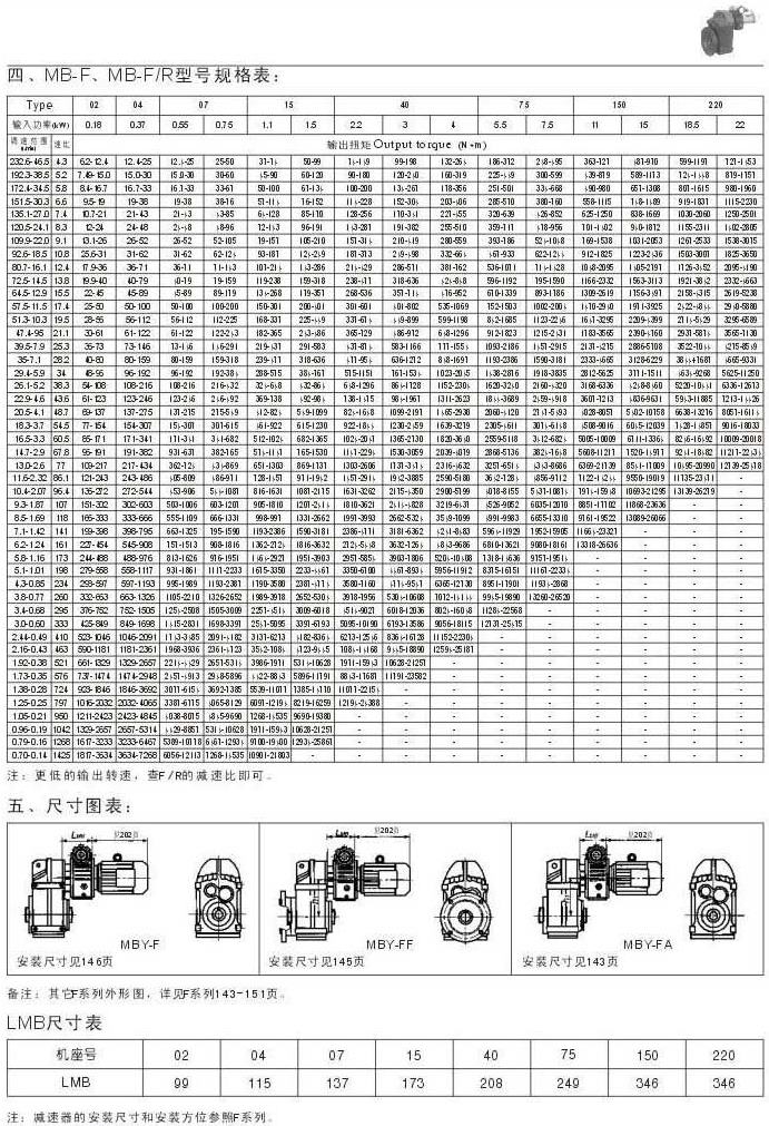 MB-F , MB-F/R型号规格表尺寸图表LMB尺寸表