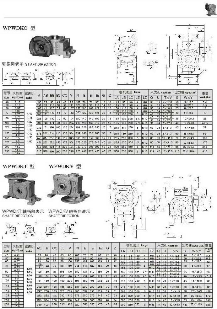 WPWDKO,WPWDKT,WPWDKV型型号参数图表