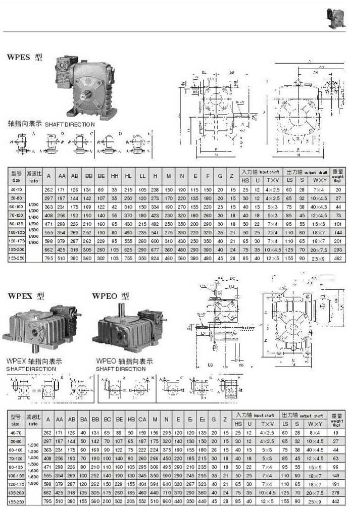 WPES,WPEX,WPEO型型号参数图表