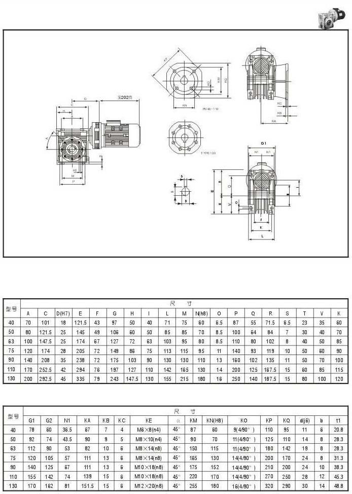 蜗轮减速机与摆线减速机组合型技术参数表(输出扭矩N.M)三