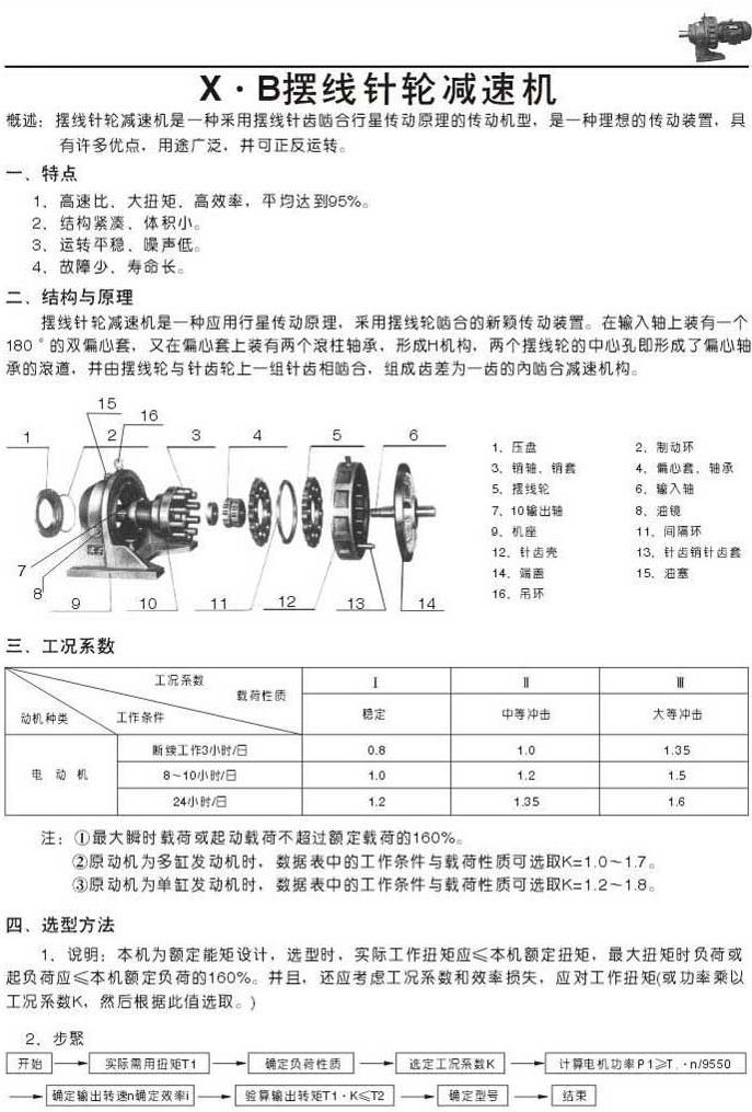 X . B摆线针轮减速机特点结构与原理工况系数选型方法