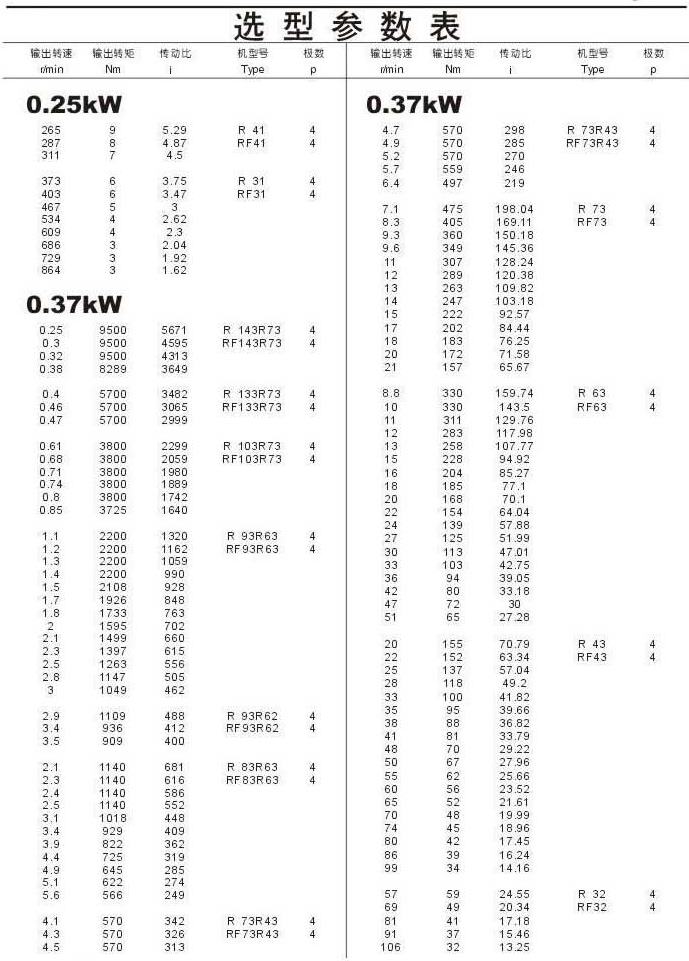 选型参数表0.25kW(续),0.37kW