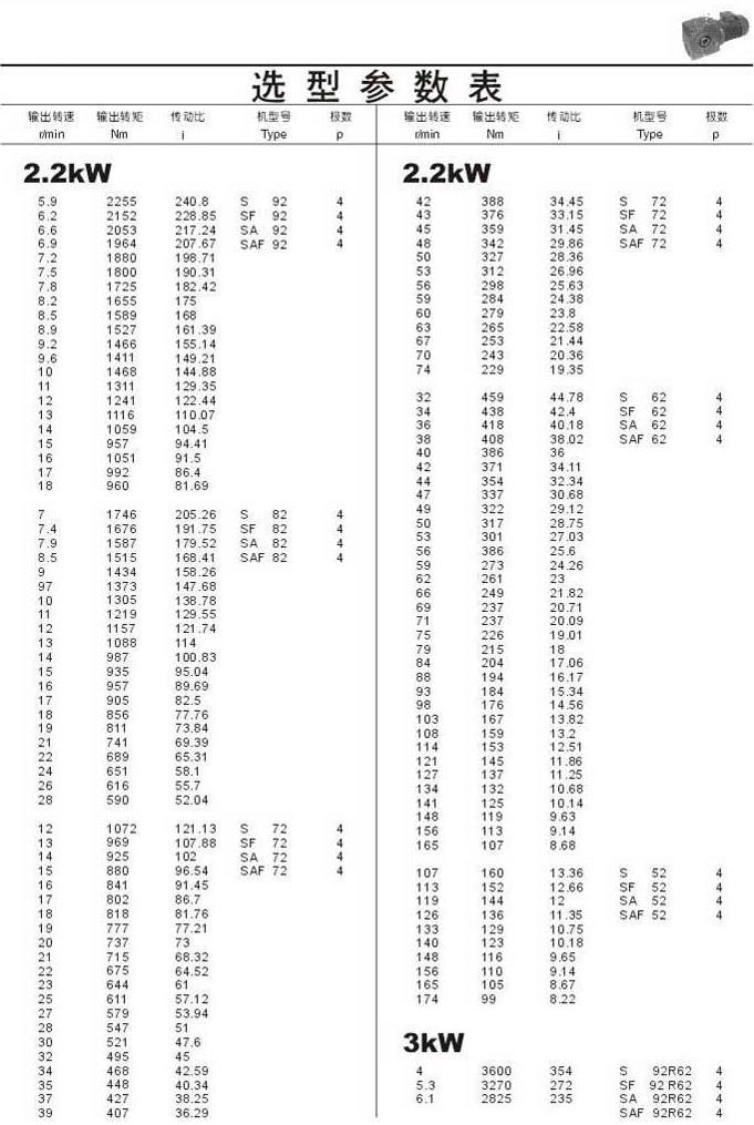 选型参数表2.2kW(续)和3kW