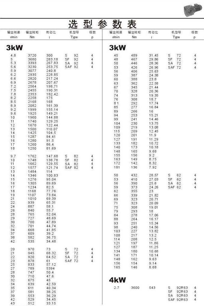 选型参数表3kW(续)和4kW